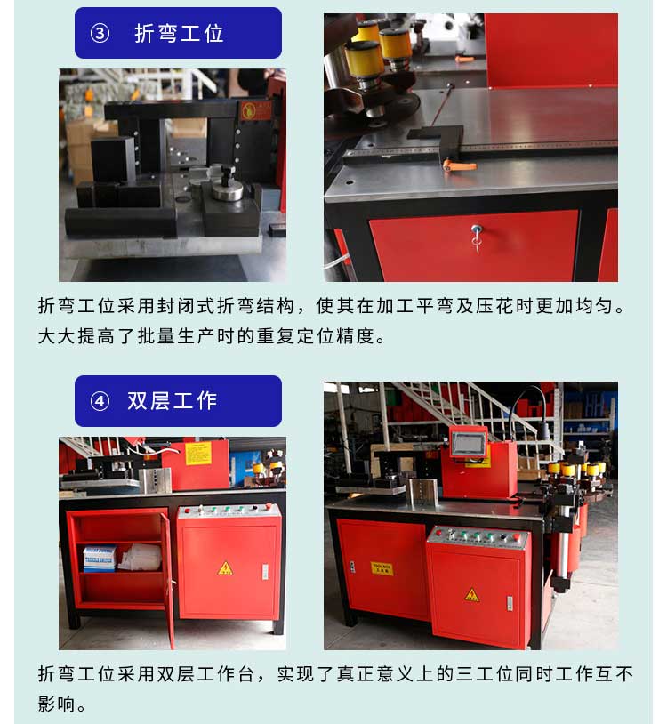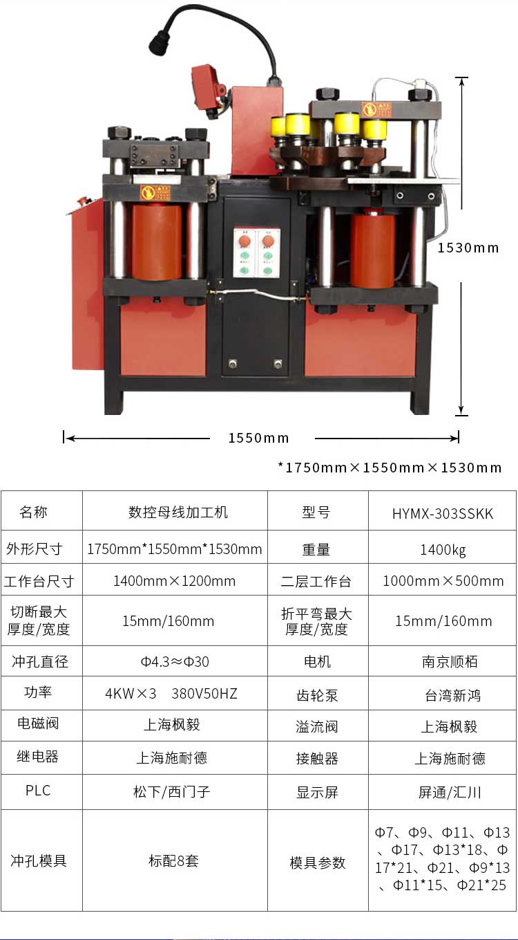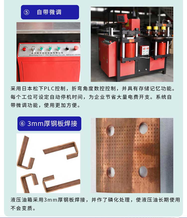 描述:本系列母線加工機(jī)有沖、剪、折三個(gè)單元,每個(gè)加工單元的工作行程均可方便地調(diào)節(jié),縮短加工時(shí)間,提高生產(chǎn)效率。主要功能為加工不同規(guī)格的銅、鋁母線,只需用相應(yīng)的加工單元,就能方便、快捷的對(duì)銅、鋁排進(jìn)行剪切、沖孔(圓孔、長(zhǎng)圓孔),折平彎、立彎、壓花等加工。通過(guò)更換模具還可完成壓平、扭麻花、壓電纜接頭,對(duì)銅棒進(jìn)行切斷、壓扁、沖孔、折彎等特殊加工。